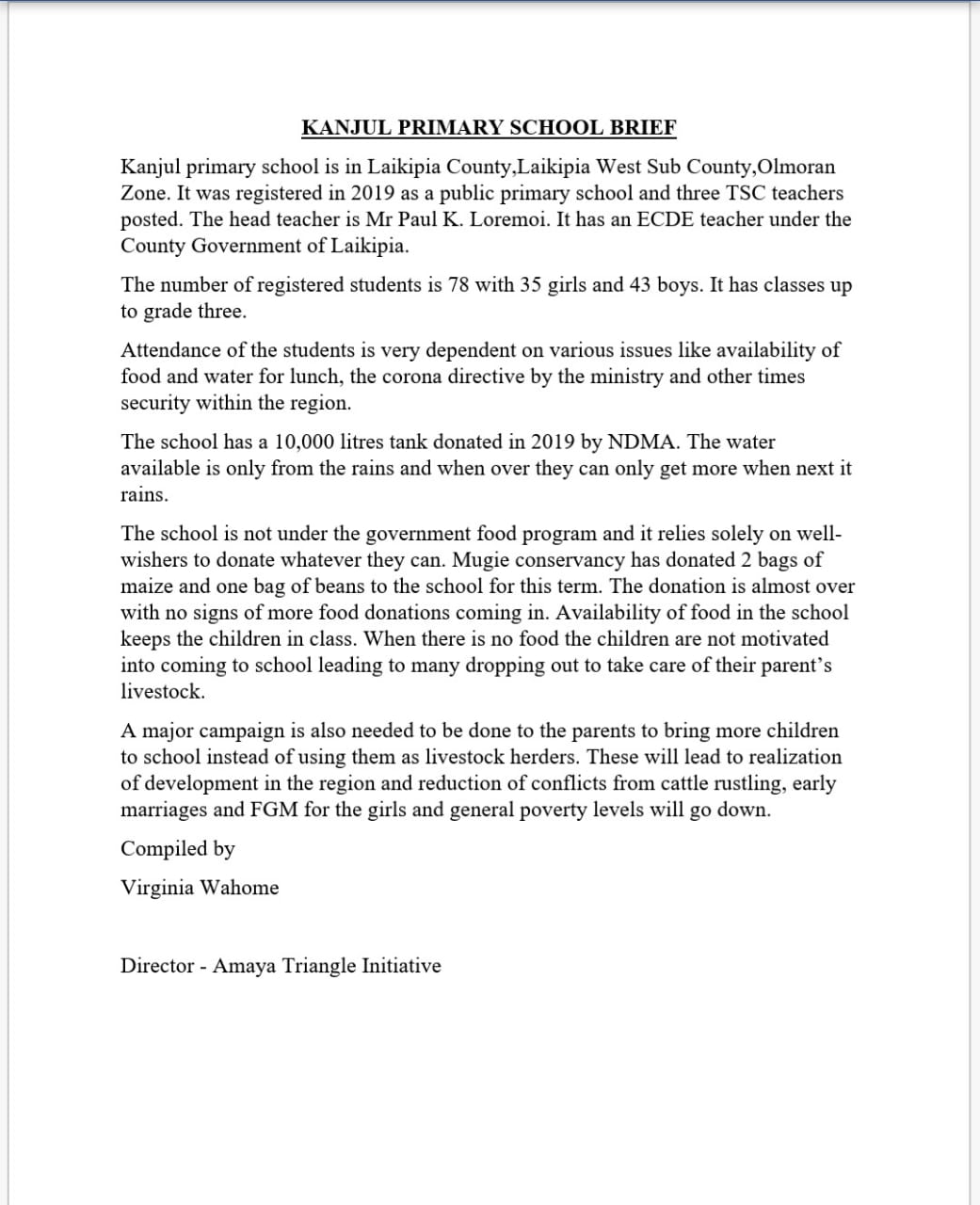 Food Donation delivered to Kanjul Primary – Lounyiek (Laikipia North/West) in Partnership with The Amaya Triangle Initiative under the County Government of Laikipia.